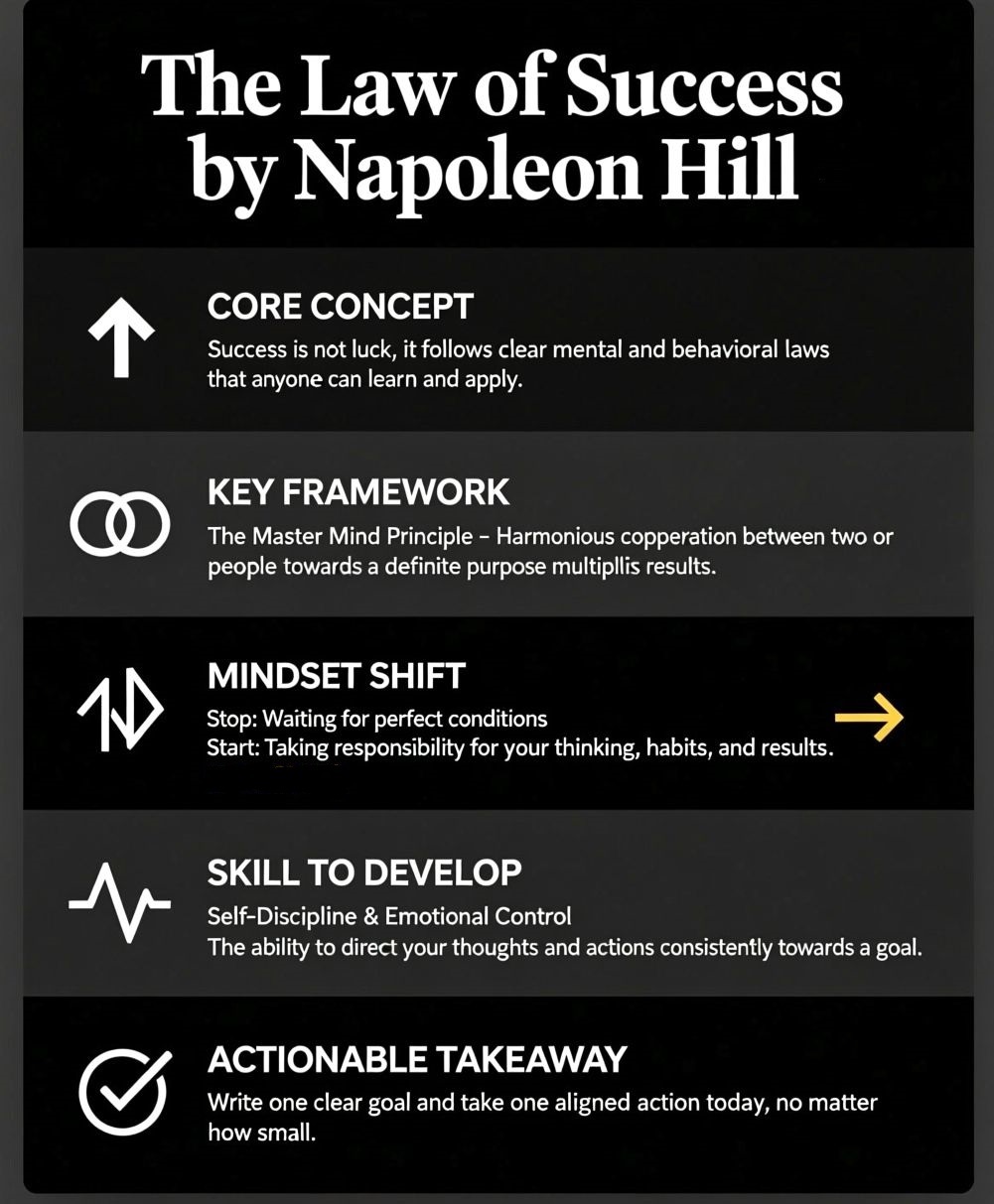 This book is not ideal for anyone looking for a quick fix or a get rich quick scheme. If you are in a state of active crisis where you need to find rent money by Friday, the Law of Success will likely frustrate you. It focuses on long term character development and building habits over months and years. It requires a level of patience and deep study that isn’t possible if you are in survival mode. If you aren’t ready to sit down, take notes, and change your actual behavior, this will just feel like a heavy history book rather than a life changing tool.